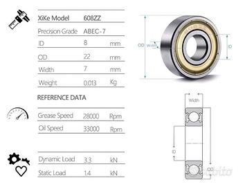 Cuscinetti a sfera 608ZZ mini in metallo, doppia protezione 8 x 22 x 7 mm, n. 28 pezzi