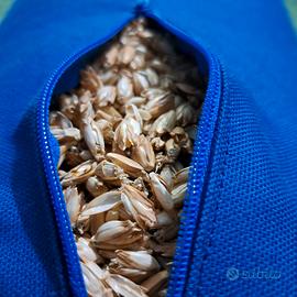 -riempito con pula di farro biologica e criotrattata. La pula di farro ha un effetto traspirante e termoregolatore sulla pelle e vanta un'azione massaggiante sul corpo. Inoltre contiene acido salicilico che mostra proprietà anti-infiammatorie;