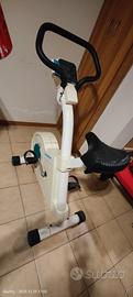 Cyclette a pedalata magnetoresistenza con regolazione e gestione elettronica, con vari programmi di resistenza a media-alta intensità molto pesante e stabile, spostamento con ruote. Funzionamento sia a pile che con cavo direttamente alla 220 v