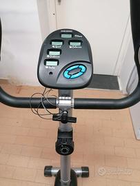 Cyclette, bicicletta statica del marchio BF, utile per l'allenamento cardiovascolare in casa. Con sistema frenante magnetico. Dotata di schermo per visualizzare calorie, tempo e distanza, e manubrio ergonomico. (NON FUNZIONANTE)