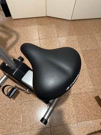 Bicicletta da camera Carnielli modello 9110 XT, con volano magnetico regolabile su 8 livelli crescenti di difficoltà. Rotelline anteriori per facili spostamenti. Computer di bordo con dati personali memorizzabili (altezza, peso, età, ecc.), indicatore del tempo d'esercizio, velocità in Km/h e numero di giri minuto, distanza percorsa, calorie consumate, test body fat, sensori ambientali di temperatura e tasso di umidità, usata pochissimo. Ritiro da parte dell’interessato.