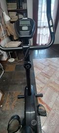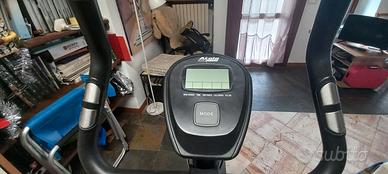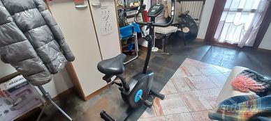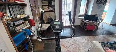 sistema frenante Magnetico e la regolazione sforzo 8 livelli regolazione manuale, un volano da 4 Kg Comodissimo il manubrio Ergonomico regolabile e la sella Regolabile orrizzontalmente e verticalmente Movimento centrale Fauber e trasmissione Cinghia poly, Dotata di funzionali rotelle per spostarla può portare persone che pesano fino a 120 Kg Dimensioni L 920 x W 505 x H 1075 mm