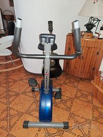 La cyclette CT90 Magnetic, è una cyclette da camera progettata per l'allenamento domestico, caratterizzata da un sistema di resistenza magnetica che garantisce una pedalata fluida e silenziosa. E' ideale per chi cerca un attrezzo semplice e funzionale per il mantenimento della forma fisica e la mobilità di base a casa. La sua facilità d'uso e il funzionamento silenzioso la rendono adatta anche per la riabilitazione leggera o per gli anziani. Caratteristiche Principali Il sistema di resistenza magnetica, regolabile manualmente, rende l'attrezzo molto silenzioso e adatto all'uso in casa senza disturbare. È dotata di un computerino integrato con un display LCD che permette di monitorare i parametri fondamentali dell'allenamento come tempo, velocità, distanza percorsa e calorie bruciate. La sella è regolabile in altezza e il manubrio può essere inclinato per trovare la postura corretta durante l'esercizio. Presenta una struttura robusta in acciaio, che assicura stabilità durante l'uso, ed è compatta per facilitarne lo spostamento. Il peso massimo supportato si aggira intorno ai 100 kg o più, rendendola adatta a una vasta gamma di utenti. ***NON SPEDISCO***