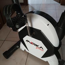 Cyclette da camera magnetica, dotata di manubri ergonomici neri con sensori per il polso, display LCD con varie funzionalità, struttura compatta con base stabile.