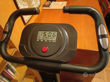 Cyclette da casa pieghevole con schienale, seduta regolabile, braccioli, 8 livelli di resistenza, monitor LCD con misurazione della distanza percorsa, velocità, calorie, tempo e pulsazioni (sensori pulsazioni sul manubrio). Usata pochissimo. Senza alcun difetto. Ritiro in zona Balduina.