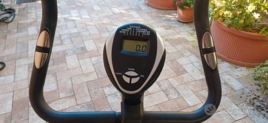 Cyclette da casa con diverse impostazioni per l'allenamento.