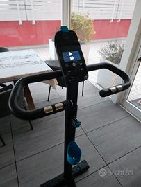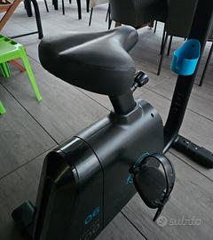 BIKE Domyos 500 Prodotto ideato per mantenersi in forma con il massimo comfort (uso regolare). La cyclette che ti segue in tutta la casa! Non serve la presa elettrica per farla funzionare. VANTAGGI PRODOTTO : PEDALATA FLUIDA: volano 6kg. COACHING: 5 funzioni, tra cui frequenza cardiaca.~7 programmi SEDUTA CONFORTEVOLE: Sella confortevole, fermapiedi, salita in sella facile, manubrio regolabile. MANEGGEVOLEZZA: Rotelle per spostare facilmente il prodotto. SOLIDITÀ: Peso massimo utilizzatore: 130 kg.