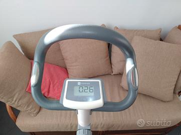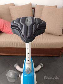 Cyclette decathlon con schermo LCD che misura distanza, velocità e Kcalorie. 8 diverse tensioni. Sellino regolabile con coprisella. Funzionante, ma con segni e qualche graffio.