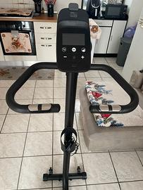 7 programmi e anche 5 funzioni: calorie bruciate, distanza percorsa, tempo di allenamento, velocità e frequenza cardiaca tramite i sensori situati sul manubrio. Con porta tablet e borraccia e ruote anteriori per facilitare spostamenti.