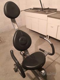 Vendo Cyclette orizzontale magnetica Domyos VA 360. Presenta segni di utilizzo prettamente estetici ma funziona ancora correttamente. La seduta è regolabile, il display indica: tempo di esercizio, distanza percorsa, calorie consumate e velocità di pedalata. Avrebbe anche la possibilità di rilevazione le pulsazioni cardiache ma il sensore è da revisionare ed è l'unica funzione al momento non più attivà. Manopola di regolazione 8 livelli di intensità di resistenza. Il freno è magnetico quindi produce una resistenza costante e non è soggetto ad usura nè a manutenzione. Lunghezza 140 cm, altezza 80cm. Dotata di rotelle e maniglie per facile spostamento. Completa di libretto istruzioni per uso e manutenzione in Italiano. Date le dimensioni, solo ritiro in zono Roma Nord.