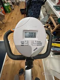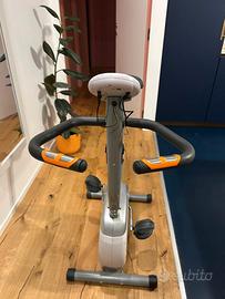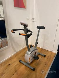 Modello: Energetics CT 1.2 Magnetic Upright Exercise Bike Condizione: usata due volte pari a nuovo, perfettamente funzionante, sella e manubrio regolabili. ideale per casa, allenamenti quotidiani o riabilitazione. Caratteristiche principali : freno magnetico, regolazione manuale della resistenza a 8 posizioni. Volano da circa 5 kg — sufficiente per allenamento cardio “leggero-medio”. Computer di bordo con display che mostra: tempo, velocità, distanza, calorie, pulsazioni (sensori mano), scan. Sella regolabile in altezza (più posizioni), manubrio regolabile, pedali bilanciati, ruote per trasporto — pratica da spostare e regolare secondo l’utilizzatore.