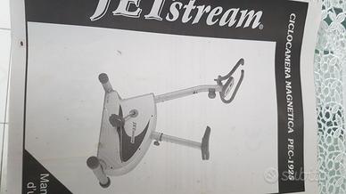 Cyclette magnetica JETStream PEC-1925 con computerino integrato, display e regolazione a manopola di forza della pedalata. Usata poco, ben conservata e in perfetto stato, molto silenziosa, con manuale d'uso originale. Piuttosto pesante e molto stabile, sella comodissima (fino a 110 Kg). Occorre mettere la pila nella consolle per far ripartire il display,con manuale d'uso e istruzioni. Tutte le parti sono regolabili. Solo consegna in loco.