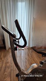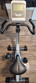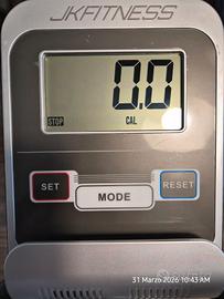 Cyclette JK246. Sistema frenante magnetico. Regolazione manuale del freno, 8 livelli di resistenza. Massa volanica di 10 kg. Schermo LCD. Visualizzazione console: Tempo, distanza, velocità, calorie, pulsazioni, distanza totale percorsa. Sensore pulsazioni: sensore per le mani. Manubrio ergonomico, impugnature multiple regolabili. Sella ad alto assorbimento regolabile in senso orizzontale e verticale. Peso massimo utente: 120 kg