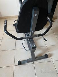 Cyclette orrizontale, schienale regolabile e sedile imbottito. Pedali larghi e antiscivolo, con cinghie regolabili. Schermo LCD multifunzionale.