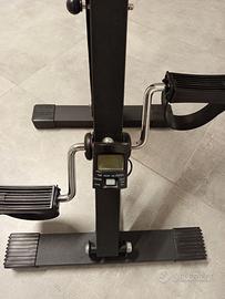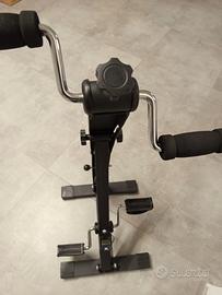 cyclette da casa che allena simultaneamente gambe e braccia con intensità della pedalata regolabile.Pedali avanti indietro con cinturino per un migliore fissaggio.Manubrio regolabile in altezza ed inclinazione.