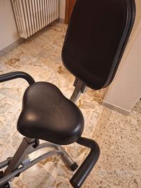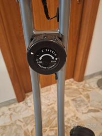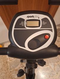 Come nuova! Dimensioni del prodotto assemblato: circa 83 x 45 x 111 cm (L x P x A) Dimensioni da piegato: circa 50 x 45 x 150 cm (LxPxA) Capacità di carico e dimensioni del corpo: fino a 100 kg e 185 cm Peso: circa 16 kg Display: piccolo display LCD senza retroilluminazione Il display mostra: tempo/durata dell'allenamento, distanza, velocità, consumo calorico approssimativo, pulsazioni Trasmissione: cinghia Poly-V autotensionante silenziosa Tipo di cinghia: 230j Massa del volano: circa 3 kg Guarnitura: 3 pezzi / cuscinetti a sfera industriali Pedali: filettatura da 9/16″ / intercambiabili con pedali standard per bicicletta Lunghezza della pedivella: circa 127 mm Alimentazione: 2 batterie (LR03-AAA-1.5V); non è necessario alcun adattatore di corrente. Livelli di resistenza: 8 livelli Sistema frenante: sistema frenante magnetico silenzioso e senza manutenzione Regolazione della resistenza: manuale tramite manopola rotante