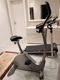 Bici motorizzata e dotata di display digitale con diversi programmi di allenamento e cardiofrequenzimetro integrato per il controllo della frequenza cardiaca.