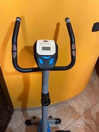 cyclette dotata di computer con display LVD per tenere sotto controllo tempo velocità’ distanza pulsazioni calorie, 5 modalità di resistenza e’ un modello con pedalata fluida e silenziosa ideale per la casa.