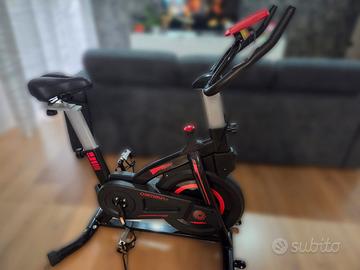 ONETWOFIT Casa Cyclette da interno con display, sellino e manubrio regolabili Spinning Bike da Ciclismo per allenamento cardio domestico (Rosso)