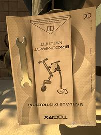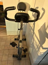 yclette pieghevole salvaspazio Toorx BRX Compact. * Funzioni display: Visualizza costantemente tempo, distanza, velocità, calorie, odometro e pulsazioni. * Volano: Massa volanica da 6 kg per una pedalata fluida. * Resistenza: Magnetica manuale regolabile su 8 differenti livelli. * Rilevazione Cardio: Sensori manuali Hand Pulse integrati. * Altro: Include un supporto per smartphone o tablet, libretto istruzioni Ritiro a carico dell’acquirente