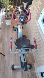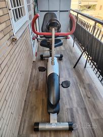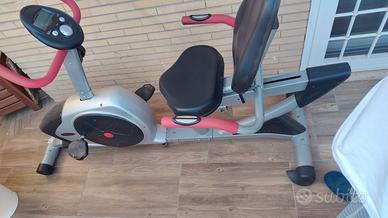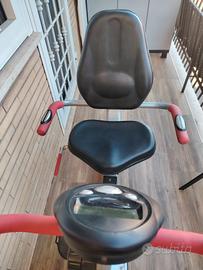 Cyclette reclinata, Bike recumbent, ideale per allenamenti cardio a basso impatto. Design:Dotata di uno schienale ampio e confortevole che sostiene la schiena durante l'uso. Utilizzo:Indicata per la riabilitazione o per chi soffre di dolori articolari o alla schiena, poiché permette una pedalata orizzontale senza gravità. Funzionalità:Solitamente include un computer per monitorare tempo, distanza, calorie e frequenza cardiaca (attualmente non funzionante) Vantaggi:Ideale per un uso domestico sicuro ed efficace. Appena messa in balcone per inutilizzo. Lunghezza 166 altezza 100, si divide a metà per il trasporto. Trasporto e ritiro a carico dell'acquirente in zona Portuense euro 80
