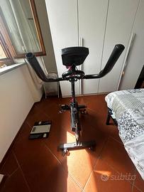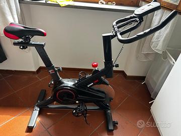 Vendo cyclette da spinning Your Move Spinn Bike 1000, ideale per allenarsi comodamente a casa. La bike è compatta, stabile e adatta per allenamenti cardio, dimagrimento, tonificazione e spinning domestico. Funziona correttamente ed è pronta all’uso. Caratteristiche principali: Modello: Spinn Bike 1000 Dimensioni: circa 110 x 48 x 113 cm Peso prodotto: circa 22,5 kg Peso massimo utente: 100 kg Trasmissione a cinghia silenziosa Resistenza regolabile manualmente Sellino regolabile in altezza e profondità Manubrio regolabile in altezza Display LCD con tempo, velocità, distanza, calorie, battito cardiaco e scan Sensori cardio sul manubrio Supporto per smartphone/tablet Pedali antiscivolo con cinturini regolabili Compatibile con app come Zwift e Kinomap (provata a collegare ma non ci sono mai riuscito) La cyclette si presenta come da foto, con normali segni di utilizzo, ma è perfettamente funzionante. Preferibile ritiro a mano. Prezzo trattabile nei limiti del ragionevole.