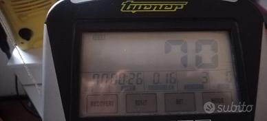 Vendo cyclette Turner MAG 958 con sensori cardio sul manubrio per rilevare i battiti. Freno magnetico con regolazione manuale ad 8 posizioni. Schermo con indicazione di: pedalate al minuto, tempo trascorso, velocità, distanza percorsa, calorie consumate, battiti cardiaci, temperatura ambiente, calendario e orologio. Usata pochissimo. Manubrio e sella regolabili. Peso di circa 30 kg. Trasportabile con 2 rotelle alla base. Visivile e ritirabile ad Ancona. Preferirei il ritiro in loco, in caso contrario la spedizione è a carico del destinatario, ho messo un costo indicativo di 25 euro, potrebbe essere più basso o più alto.