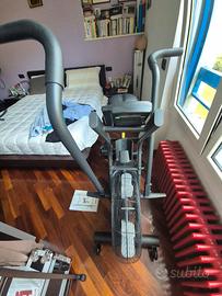 TOORX - Robustissima cyclette Dotata di un sistema di resistenza ad aria, questa cyclette è ideale per chi cerca una sfida fisica variabile e personalizzabile, a seconda dello sforzo che si completa con personalizzabile movimento delle braccia ad ellittica. Design Robusto e Comfort ErgonomicoIl movimento fluido e naturale è garantito dalla resistenza che aumenta proporzionalmente alla velocità della pedalata, Il sellino è ergonomico e regolabile in altezza e profondità Monitoraggio Completo delle Prestazioni Grazie al display LCD di facile lettura. Inoltre, i pedali antiscivolo con cinghie regolabili offrono un'ottima aderenza, compatta si sposta agevolmente grazie alla presa posteriore e le piccole ruote anteriori mobili in sollevamento. inutilizzata per regalo. inoltre vendita attualmente a 599 euro