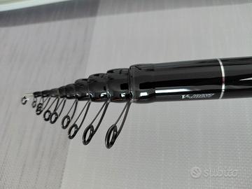 Daiwa amorphous extreme 7m BI, monta anelli fuji k alconite,placca TN6 in carbonio e titanio,una pescata all'attivo,zero graffi,fodero originale,castelletto distanziatore in carbonio e dischi in eva lavorato al tornio,spedita in tubo rigido pvc 370,consegna a mano 350,no sognatori,no perditempo.le spese spedizione sono di 20€ con tubo rigido,no 10€,è il tubo costa 10€.