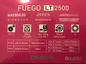 Daiwa Fuego 2500 spinning, mulinello leggero e preciso, perfetto per bass, trote, street fishing e pesca a spinning in generale. Mulinello ben tenuto, normali segni di usura come da foto. Scatola compresa. Lascio montato treccia 18 lb nuova. Spedisco.