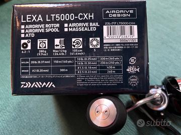 Mulinello Daiwa Lexa 5000-CXH, mulinello adatto sia a saltwater che freshwater, il mulinello è nuovo mai usato acquistato 30 ottobre 2024 come backup del suo fratello maggiore Certate ma non ha mai visto l’acqua. Caricato con 300 Mtb. di trecciato Daiwa J-braid grand x8 PE 1,5 nuovo. Completo di scatola mulinello e trecciato. Disponibili foto e visione se in zona.