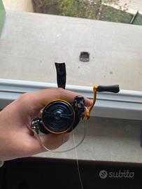Mulinello con 1 uscita, comprato nuovo 1 settimana Fa, vendo per cambio modello! Imbobbinato con treccia 0.18 e finale in fluorocarbon 0.16