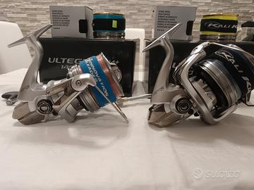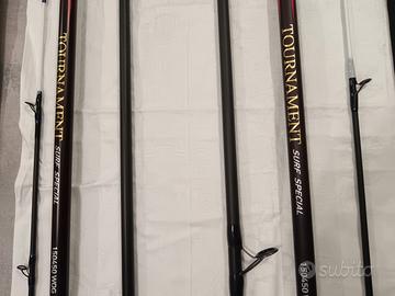 coppia di canne immacolate top di gamma DAIWA modello: Tournament Special surf 4.50m 150gr legature personalizzate cedo x totale inutilizzo prezzo x la coppia 500 disponibili anche due mulinelli Shimano Ultegra XSC CI4 14000 con 4bobine e scatole immacolati..posso spedire in tubo rigido anche se preferirei ritiro di persona