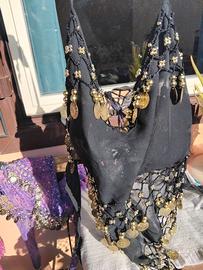 Completo da danza del ventre taglia M. 6 pezzi incluse scarpette numero 37, gonna, maglia scollata, 3 cinture