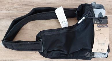 Portaborraccia + borraccia 500ml con cintura alla vita Decathlon Evadict originale nuovo mai usato ancora etichette; tasca portatelefono con zip di chiusura (il mio samsung A52s schermo 6.5" ci sta comodo).