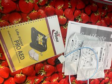 Defibrilllatore semi automatico mai usato con piastre adulti e pediatriche bambini istruzioni italiano batterie nuove! Noo perditempo