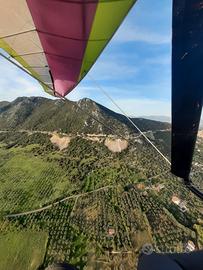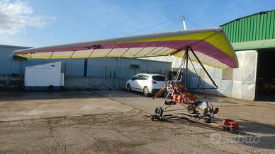 Vendo Polaris cross country ed ala gryps 16 m². Esemplare unico in Titanio leggerissimo e ben fatto con rotax 503 mono carburatore e mono accensione revisionato con paraolii e cuscinetti nuovi tutto in fattura, ammortizzatori anteriori nuovi, serbatoio nuovo più uno di riserva, candele pipette e cavi nuovi, impianto benzina nuovo con pompa elettrica e pompa a depressione nuova. Elica di pregio tripala con passo variabile a terra. L'Ala da 16mq ha il bordo d'attacco nuovo e bulloneria nuova sostituite nel 2022 e da quel momento volata per circa 25 ore. Parzialmente strumentato ma posso fornire variometro da volo libero. REGALO secondo motore rotax per uso ricambi con riduttore a cinghia e bussola nuova. Il Paracadute di emergenza Cylindricone essendo nuovo (2022) é ESCLUSO nel prezzo esposto. Molto piacevole da volare essendo trike e ala della stessa casa produttrice. 2700€ trattabili