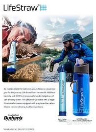 É ora disponibile anche a Nuoro presso il CTS VIAVAI, LifeStraw, un innovativo dispositivo a forma di cannuccia che ti permette di filtrare l'acqua e renderla potabile all'istante. Puoi bere direttamente da un lago, un fiume, un fosso, una pozzanghera, un bicchiere o una borraccia inserendo semplicemente la cannuccia nell'acqua. Elimina il 99,9999% di batteri e il 99,9% dei protozoi presenti nell'acqua ed è in grado di filtrare 1000 litri di acqua! LifeStraw è leggero (pesa solo 56g), portatile, compatto ed economico. Che tu sia un avventuroso esploratore come Bear Grylls, un escursionista od un semplice viaggiatore o campeggiatore LifeStraw è il perfetto compagno di viaggio. Piccolo e compatto puoi infilarlo in una tasca.