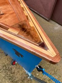 Vendo deriva Goat Island Skiff in legno di 4,75m di lungheza. Peso 75 kg. Inclusa un vela “balance lug sail” su misura, telo impermeabile su misura e carrello di varo su misura. Costruita a mano con progetti originali (inclusi) tra 2020 e 2022. Cinque tipi di legno: ocumè, pino, abette, noce e mogano.