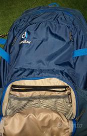 Bello zaino della nota marca tedesca Deuter, capienza 20 L, ben imbottito su schiena ( con sistema aerazione Deuter Airstripes) e spalle.Tasca anteriore con ulteriore comparto interno a cerniera .Comparto principale con spazio porta sacca idrica. Scomparto portacasco con sistema di fissaggio integrato. (rain cover non presente).Vendo a soli 20 euro.Nuovo costa tra 80 e 115 euro.
