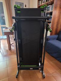 E' stato un regalo mai usato (solo qualche prova appena montato). Resistenza magnetica, no elettrico Inclinazione manuale 3 livelli Regolazione sforzo manuale 8 livelli Dimensione nastro di corsa 34x110cm Dimensioni aperto: 135 x 64 x 130 cm Dimensioni chiuso: 64 x 36 x140 cm