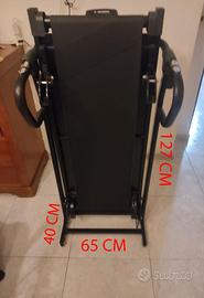 Resistenza magnetica (senza motore) Regolazione dello sforzo manuale su otto livelli Doppio volano Dimensione nastro di corsa 33 x 101 cm Rilevazione cardiaca palmare Supporta un peso massimo utente di 100 kg Nota! E progettato solo per camminarci sopra. Studiato appositamente per chi ama fare camminate veloci o lente su diversi livelli di pendenza