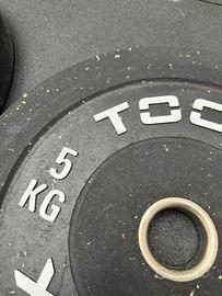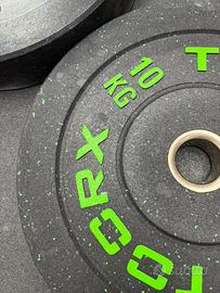 Vendo dischi bumper TOORX con foro olimpico 50mm, ideali per bilancieri olimpici e allenamento funzionale/cross training.