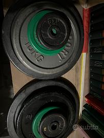 dischi di ghisa comprabili solo da vicino. Per informazioni contattare. Sono due dischi da 20kg, due dischi da 10kg, due dischi da 2,5 kg, due dischi da 1 kg