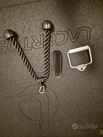 Vendo attrezzatura e dischi per home gym. Attrezzatura disponibile al momento: - Manubri componibili 35 cm diam. 28 mm con fermi (2 coppie) prezzo 20,00 euro a coppia; - Dumbbell coppia manubri 7,5 kg prezzo 35,00 euro; - Impugnatura lat machine sidea presa larga prezzo 40,00 euro; - Impugnatura lat machine toorx 122 cm con 6 prese prezzo 30,00 euro; - Maniglia singola Gorilla Sports prezzo 10,00 euro; - Corda tricipiti prezzo 15,00 euro; - Maniglia Pulley Boomfit prezzo 15,00 euro; - Attrezzo artigianale per TBar e Belt squat prezzo 10,00 euro cadauno. No perditempo! Per informazioni chiedete pure.