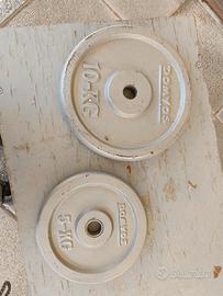 dischi ghisa 5 e 10 kg e bilancieri dritto e sagom