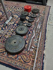 Vendo in blocco o separatamente pesi in ghisa, manubri e bilancieri di diverse marche e in ottime condizioni. Nello specifico: 1 bilanciere classico 180 cm 1 bilanciere EZ curvo 120 cm 2 manubri classici 2 x dischi 20 kg 2 x dischi 10 kg 8 x dischi 5 kg 8 x dischi 2 kg 4 x dischi 1 kg Prezzo da concordare in base all'acquisto
