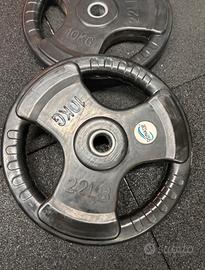 Coppia dischi gommati pesi palestra per bilanciere 10 kg. (20 kg. totale) diametro 28 mm.