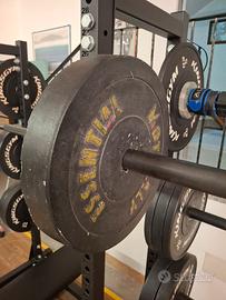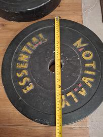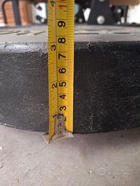Dischi olimpionici da palestra, 25kg l'uno. Di cemento rinforzato, con rinforzo di plastica dura nel foro e trattamento esterno per renderli più resistenti. 1€ al kg, prezzo introvabile.