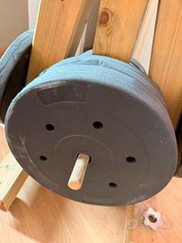Vendo per inutilizzo dischi pesi varie misure 25mm 2€/kg 2 dischi da 20kg ghisa: 80€ 2 dischi da 15kg: 60€ 4 dischi 10kg gommati: 80€ 4 dischi 5kg gommati: 40€ Rastrelliera in legno per dischi home-made con ruote: 40€ Si valuta anche vendita separata